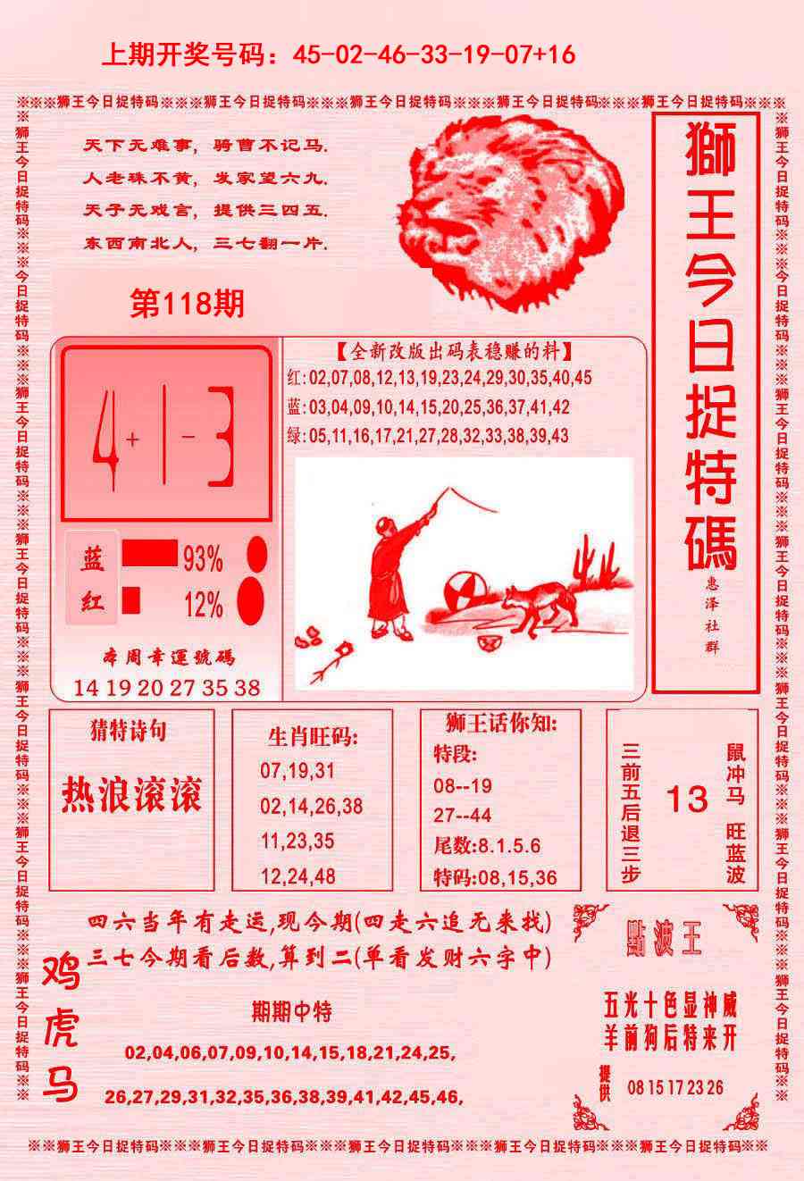 118期: 澳门六合皇彩圖信封【狮王平特】每期自动更新