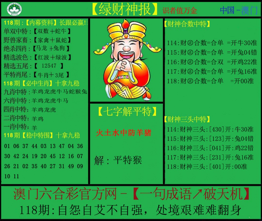 118期: 澳门六合皇彩圖信封【绿财神报】每期自动更新
