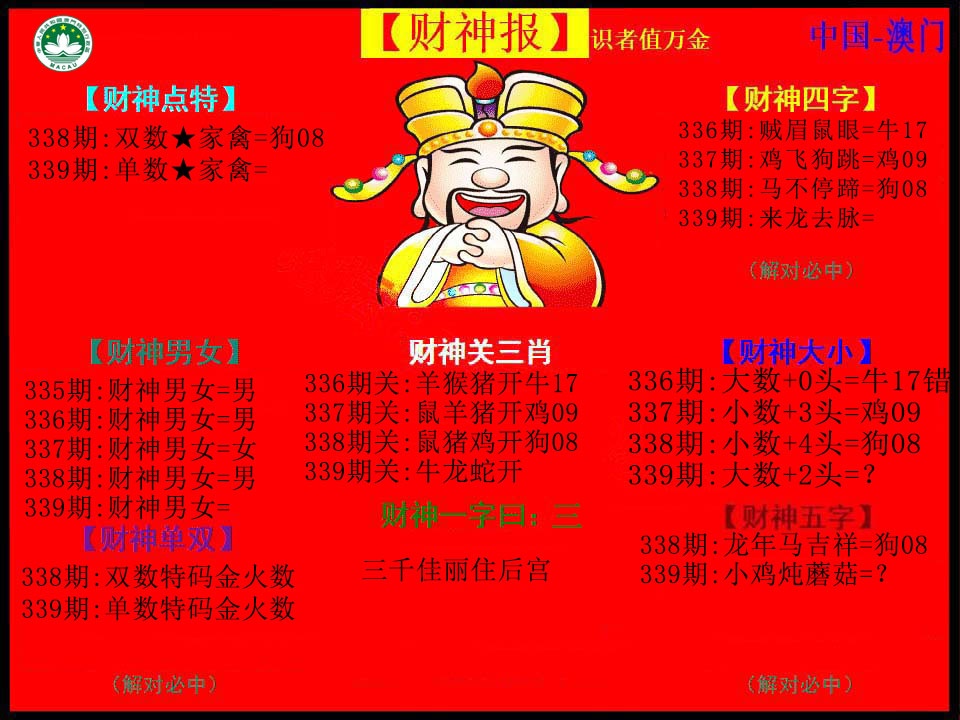 339期: 澳门六合皇彩圖信封【黄财神报】每期自动更新